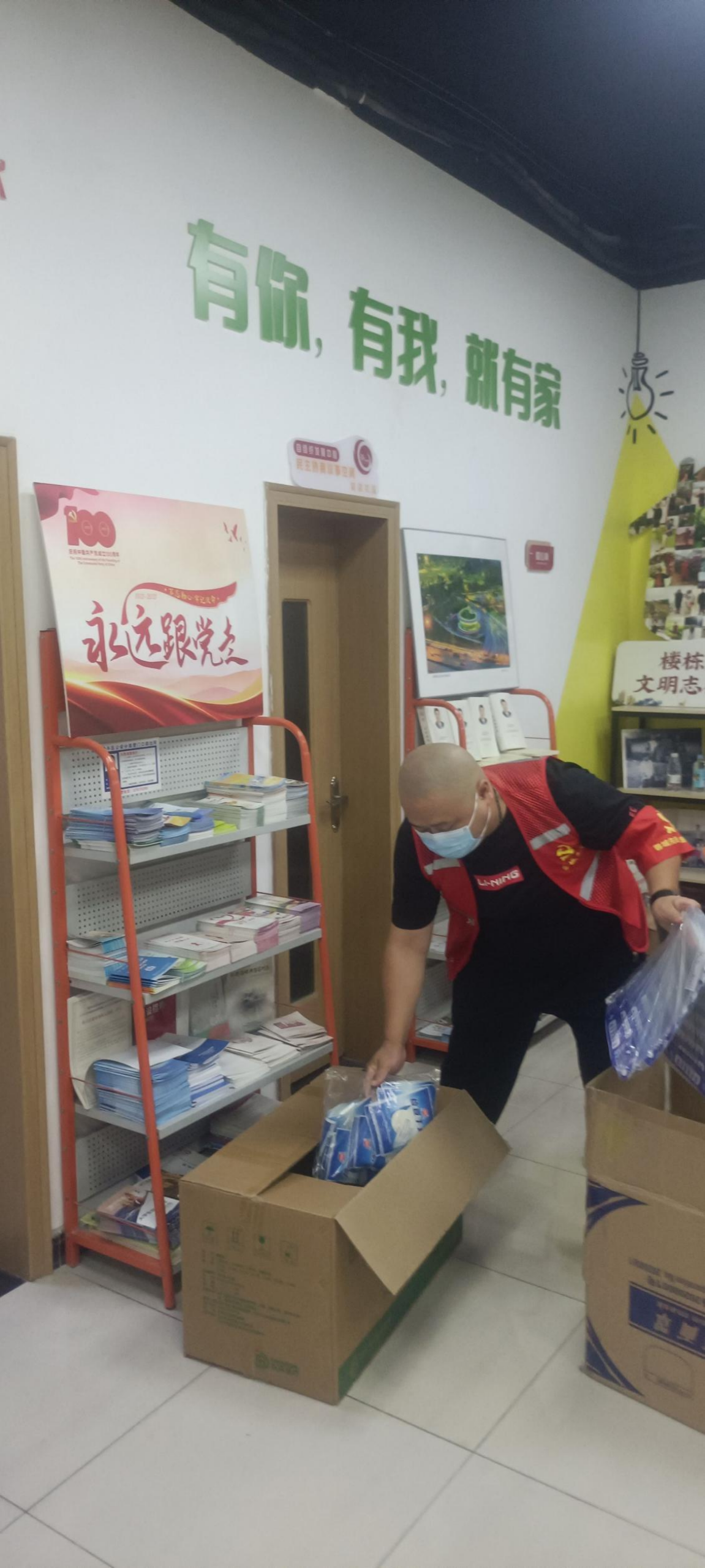后勤服務部葉世偉正在整理防疫物資