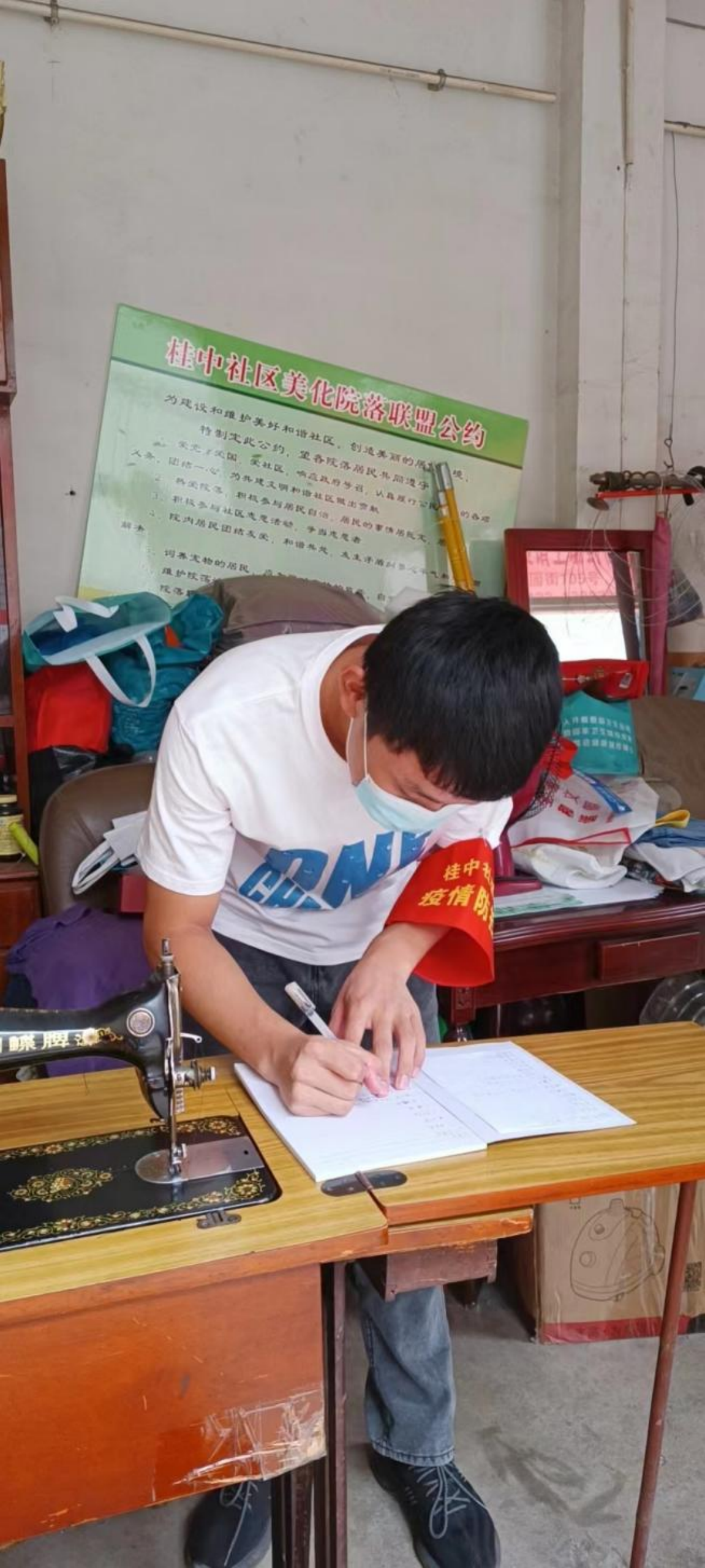 測繪分院何雙江正在登記防控資料