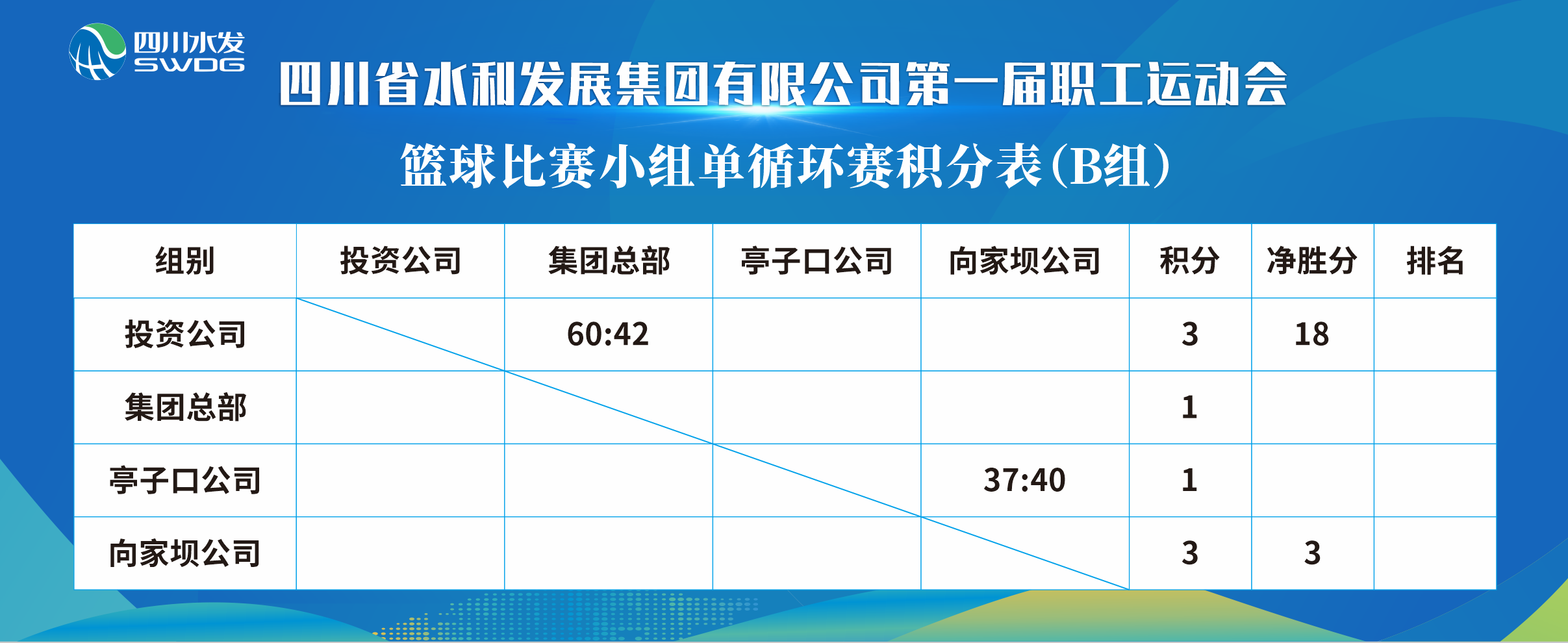 此次運(yùn)動(dòng)會(huì)分為2個(gè)階段。12月5日-12月8日為預(yù)賽階段,比賽項(xiàng)目包括:五人制足球賽、籃球賽、羽毛球混合團(tuán)體賽、乒乓球混合團(tuán)體賽,來自集團(tuán)總部及7個(gè)下屬公司共220余名運(yùn)動(dòng)員以循環(huán)賽和排位賽的方式角逐4個(gè)類別,8個(gè)決賽名額。12月9日,將舉行此次運(yùn)動(dòng)會(huì)開閉幕式,球類比賽決賽以及趣味運(yùn)動(dòng)會(huì)。
