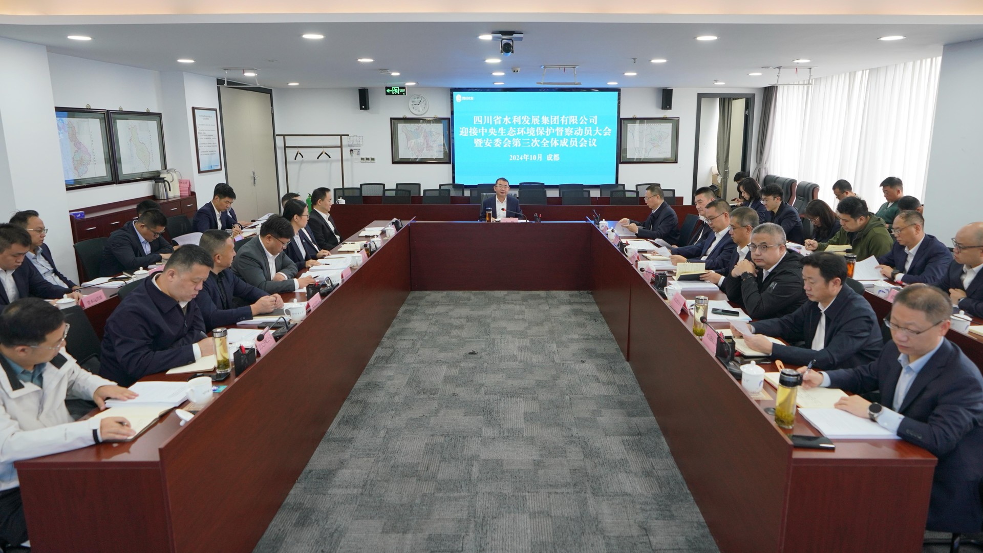 2024年10月18日,四川省水發(fā)集團在中央第三生態(tài)環(huán)境保護督察組督察四川省動員會后賡即安排部署相關(guān)工作。10月21日,四川省水發(fā)集團組織召開迎接中央生態(tài)環(huán)境保護督察動員大會暨安委會第三次全體成員會議。集團黨委書記、董事長、環(huán)水保領(lǐng)導(dǎo)小組組長王華主持會議并講話。?