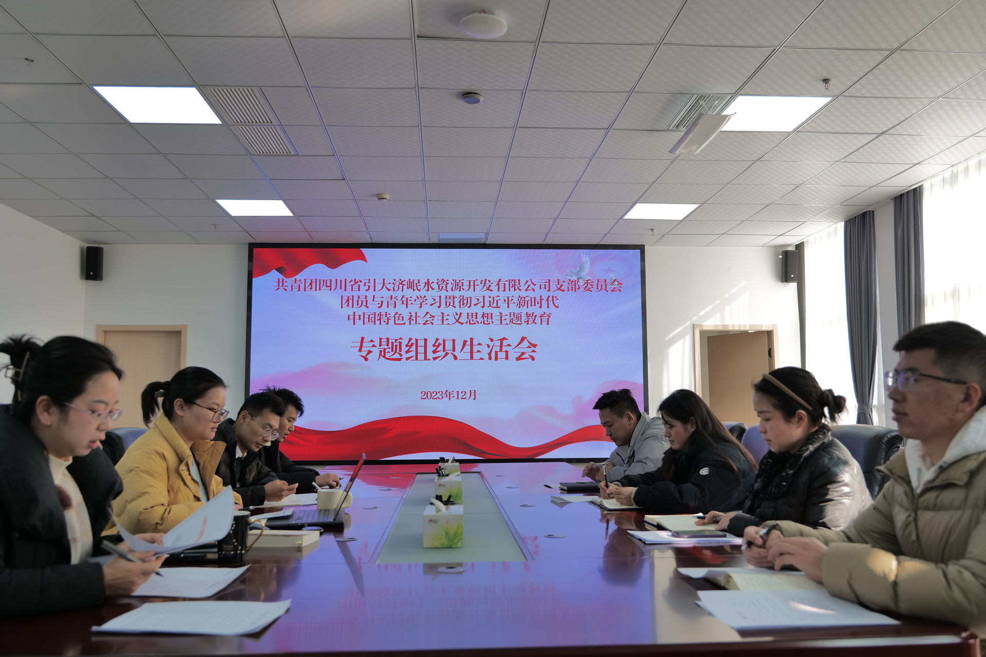 ? ? ? ?本月,引大濟岷公司團支部組織召開團員和青年主題教育專題組織生活會暨團員教育評議會,會上,團支部書記做述職報告,團員和青年之間開展了批評與自我批評,并完成了團員年度評議工作,團支部書記組織大家再次學(xué)習(xí)了《習(xí)近平新時代中國特色社會主義思想專題摘編》,夯實了團員和青年主題教育理論思想基礎(chǔ),觀看了共青團中央五四微電影《重逢》,通過互提、互幫、互學(xué),達到了增進團結(jié)、統(tǒng)一思想的目的。大家紛紛表示,要把學(xué)習(xí)到的理論知識轉(zhuǎn)化成干事創(chuàng)業(yè)的強大動力,鞏固好團員和青年主題教育階段性成果。